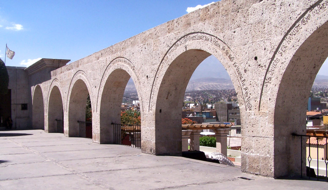 Ubicado en el pintoresco distrito homónimo, ofrece una vista panorámica de la ciudad y los volcanes Misti, Chachani y Pichu Pichu. Sus arcos de sillar tallados con frases célebres son un atractivo extra.