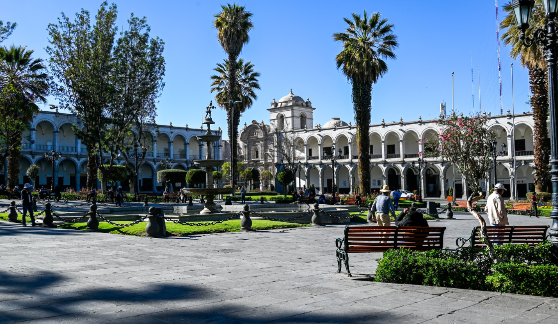 Corazón de la ciudad, rodeado por la Catedral y edificios coloniales de sillar, es el punto de partida perfecto para conocer Arequipa a pie.